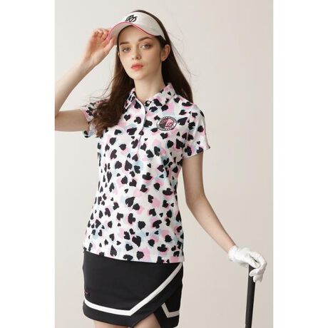 サラッとしたソフトな肌触りが特徴のカノコ素材を使用。ストレッチ性があり、軽量で程良いフィット感のあるポロシャツに仕上げました。暑い季節にも快適に着用頂けます。ベーシックなポロシャツに、ブランドオリジナルのエンブレムワッペンや刺繍を施し、アクセントをプラス。夏の日差しに映える、PINKY&DIANNEならではのアニマルプリントは、ゴルフ場でも華やかに際立ち、視線を集めます。
