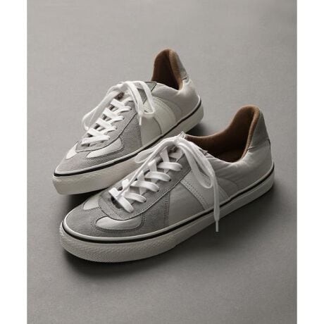 REPRODUCTION OF FOUND (リプロダクション オブ ファウンド) GERMAN MILITARY TRAINER スケート/4700GFSスケートボーディング仕様のモディファイドモデル。1980年代にかけてドイツ軍でトレーニングシューズとして採用されていたスニーカーの通称《ジャーマントレーナー》。アッパーは、イタリアの老舗ファブリックメーカーの高密度ツイルと上質なイタリアンスエードレザー。天然ゴムの含有率85%以上の柔軟なラバーを使用したヴァルカナイズドソールとEVAインソールでグリップ力やクッション性をアップ。ライニングとインソールで使用しているナイロンポリエステル混高機能ファブリック"ドライベスト"は抗菌/通気/吸水速乾/耐久性に優れています。タンと履口に肉厚のパットを入れることでホールド感やパフォーマンス性をアップさせたスケートラインです。【REPRODUCTION OF FOUND /リプロダクション オブ ファウンド】「見つけ出す:FOUND」、「再現する:REPRODUCTION」をコンセプトに、2016年SSシーズンよりスタートしたブランド『REPRODUCTION OF FOUND(リプロダクション オブ ファウンド)』。ミリタリーアイテムを中心に時代を超えた普遍的なアイテムを見つけ出し、現代的に再現させてリリースしています。ミリタリートレーナーシリーズは、1950〜1990年代にかけての数多くの軍用トレーニングシューズを生産していた各国のファクトリーで、ひとつひとつ丁寧にハンドメイドで生産。ロゴやタグには品名・国名・年代を記載し、デザインソースとして明かしています。