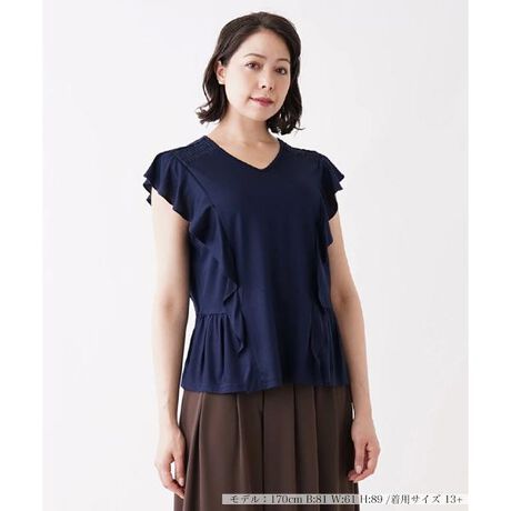 ショルダーからヘムにかけてトッピングしたフリルが、デイリーなスタイリングを愛らしく彩るVネックカットソー。サイドウエストにはしゃーりぐを施しているから、タックアウトでもメリハリのある着こなしが叶います。 ■□Leilian WHITE LABEL(ホワイトレーベル)・・・実力派デザイナーとの協業で、ベーシックな商品によりトレンド性を取り入れたブランドです。□■※定価(税込)は、2022年06月29日のセール開始前の店舗における販売価格です。