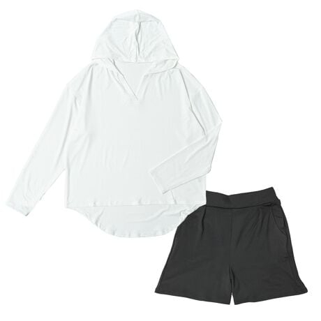 ラッシュガード レディース 上下セット 通販 長袖 おしゃれ パーカー プルオーバー 無地 シンプル ショートパンツ セットアップ UVカット 紫外線対策 UPF50+ 接触冷感 ひんやり 冷感素材 吸水速乾 軽量 軽い 動きやすい ストレッチ Rash Guard ラッシュガード HW8235