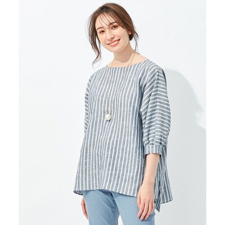 マルイウェブチャネル   /   自由区   /   トップス   /   シャツ   /   【洗える】リネンストライプ ボートネックブラウス