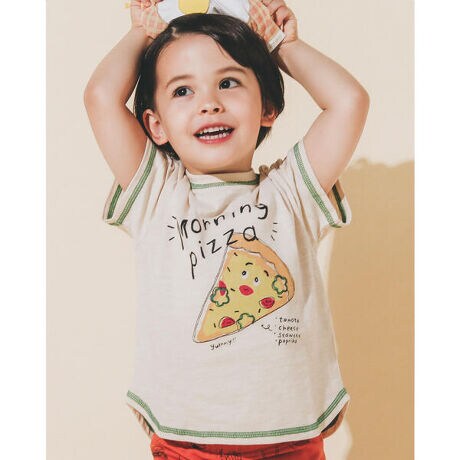 手書き風 ピザ 配色 ステッチ PAKUPAKU Tシャツ (80〜130cm)