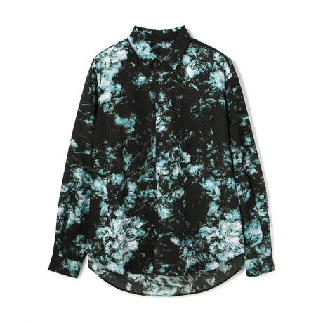 DankeSchon大胆なグラフィックが目を惹く一枚です。フラワーモチーフの上から絞り染め加工を施す事で幻想的な仕上がりです。一枚では勿論、ジャケットやコートのインナーとしても活躍します。サラッとした素材感とややオーバーシルエットの程よくトレンドを取り入れたデザイン。DankeSchon・・・DankeSchonとは、このブランドの核となるキーワードD digitaliyデジタル式A Architect創造者N neologism新表現K kittenish悪ふざけE engrossing心を奪うの頭文字を組み合わせたものにドイツ語のSchonを付け、ブランドの意図に賛同してくれる人達に感謝の意味を込め、「DankeSchon(ありがとうの意味)」としている。ファッションのテーマは「ニュースタンダード」。 時代に抗うのではなく、すり抜け受け流すことでブランドに見合う要素を抽出し、高品質な素材と、デジタライズなグラフィックを掛け合わせコレクションに落としていく。純粋なシルエット、ディテールへの徹底したこだわりと同時に、ユニークで新しい見解も積極的に取り入れる。そこから生み出された製品は、実用的でごく自然に日常に馴染むもの。
