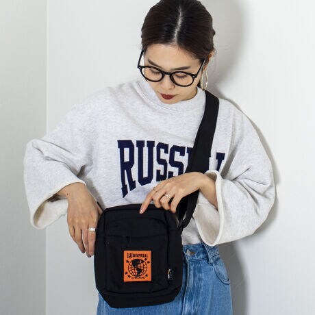 ユニバーサルオーバーオールのスクエア型ショルダーバッグ。
