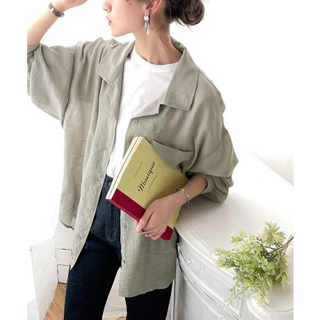 《JaVaジャバ コラボ》シアーでこなれ感。メンズライク開襟シアーブラウス