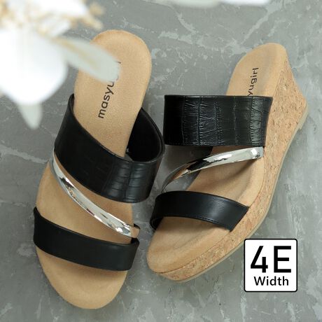 【4E幅広・大きいサイズ】クロコ調カジュアルウェッジミュールサンダル