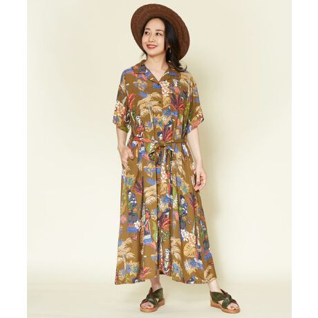 他では出会えないメキシカンスタイル。メキシコの画家フリーダカーロをイメージしたアロハシャツワンピース。カラフルな色合いと、こだわりのプリントデザインが詰まった一枚。前を開けてロングカーディガンとしても大活躍間違いなし。ウエストの紐でシルエットの調整が可能。自分だけのこだわりに胸が躍る。