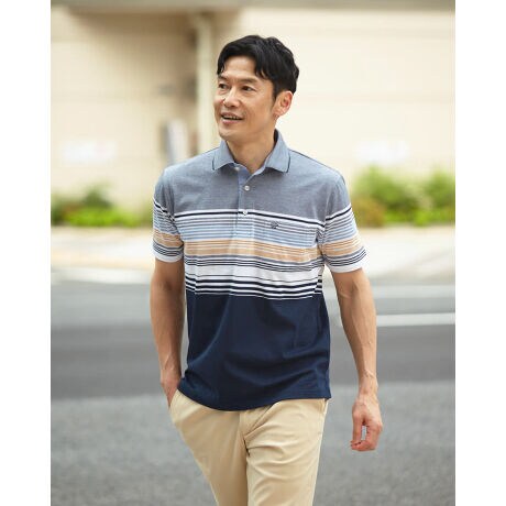パネルボーダーの半袖ポロシャツです。