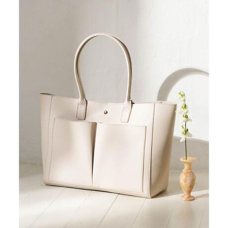 ◇COLORS & chouette(カラーズアンドシュエット)のフロントポケット A4対応トートA4サイズ対応のたっぷりと収納できるトートバッグです。前胴には大きめのオープンポケットが2カ所、内装にも大きなオープンポケットが1カ所と、大容量かつ収納力も◎1枚合皮の構造のため軽量かつ、肩掛けも可能な長めなハンドルは荷物の多いかたでも安心の設計!開閉口はマグネットボタンが付いています。カラー展開豊富なので、あなたに合うカラーがきっと見つかるはず♪