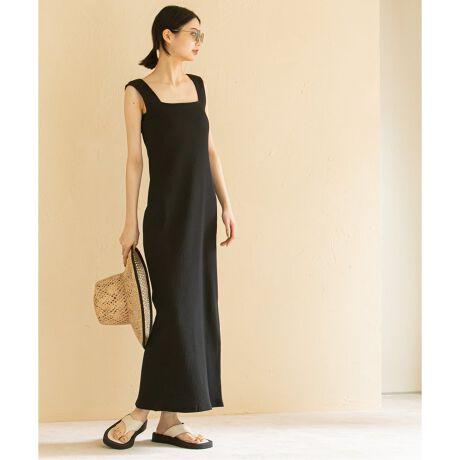 スクエアネックリブワンピース