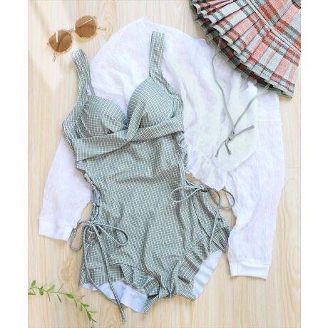 【 OSYAREVO 】matte colorsside lace up swimsuit 2 set