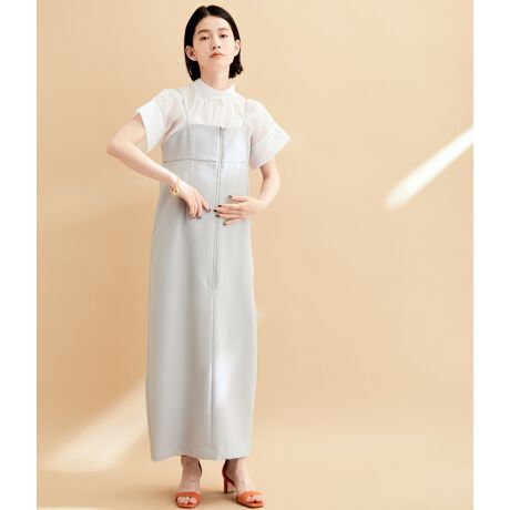 ワンピース:程よくコクーンシルエットに仕上げた、フロントジップがポイントのキャミワンピース。ボリュームが出すぎずタイトすぎない、絶妙なシルエットにこだわっており、サイドにポケットのある機能面も嬉しいポイント。