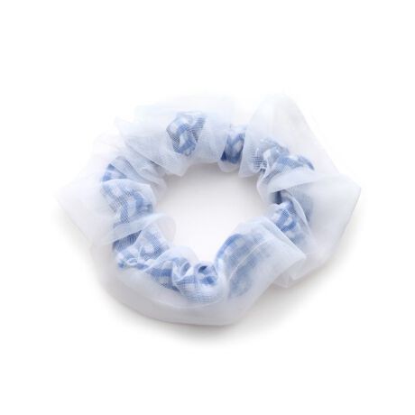 ギンガムチェックとチュールを組み合わせた可愛らしいシュシュ。