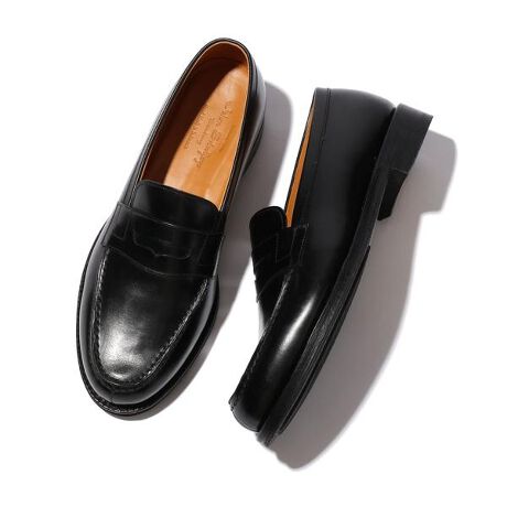 使い勝手の良いハーフラバーソールを搭載させた別注アイテムレザーソールは水に弱く、耐久性が弱いという弱点がありますが、それを補うためにハーフラバーソールを搭載させた別注アイテムとなります。ローファー専用のラスト「18045」を使用した定番のコインローファーはフレンチシックなテイストが魅力です。立体的なトゥのモカ縫いも素晴らしく、サドルの形や全体的なバランスも秀逸な1足。フィット感と足馴染みが良く、『なかなか足に合うローファーが無い』という方にもぜひ試していただきたいモデルです。クロップドパンツやロールアップしたパンツなどすっきりした足元と好印象。カバーソックスでの素足感覚はもちろん、ソックスとのコンビネーションも楽しめるので、一年通して重宝するアイテムです。グッドイヤーウェルテッド製法の原型でもあるハンドソーンウェルテッドこの製法は、最後のアウトソールの縫いのみを機械で行い、あとの工程はすべてハンドメイドで作られています。最大の特徴は手縫いでなくては不可能な、曲がった針を使って行う「すくい縫い」。熟練の職人によりアッパー、中底、ウェルトを松脂を擦り込んだ麻糸で縫い付けていきます。グッドイヤーウェルト製法に使われる、リブと呼ばれるパーツを使用しない為、返りがよくとても軽い履き心地を味わうことができます。そして、構造上インソールの下側にウェルトを縫い付ける為のリブを掘るため、インソールの厚さは通常の革靴より厚いものを使用し、結果的に履きこむことにより足に沿って沈みが生まれパーソナルレベルでの履き心地の良さが実現されます。 ※こちらのアイテムはUK表記となります。ご注意ください。下記のcm換算は目安となります。ご容赦ください。inc⇒cm6h⇒約25.5cm7 ⇒約26cm7h ⇒約26.5cm8 ⇒約27.0cm※商品の色味につきまして、お客様のお使いのPCのモニター環境により実際のカラーと画像の色味が違って見える場合が御座います。予めご了承の上、ご注文下さい。※画像の商品はサンプルです。実際の商品と仕様、サイズ、素材が若干異なる場合がございます。予めご了承下さい。【JALAN SRIWIJAYA/ジャランスリウァヤ】靴の聖地であるイギリスでの修行経験と皮革生産の最高峰であるフランスでの現オーナーのコネクションを最大に生かしたインドネシアの