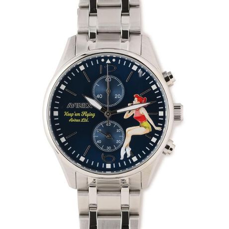 ピンナップガールが目を惹くクロノグラフの腕時計です。シンプル過ぎないクロノグラフデザインの腕時計は、存在感もありアクセサリーとしても活躍してくれます。「Keep'em Flying/飛び続けろ」というAVIREXらしいメッセージとピンナップガールが印象的なデザインになっています。【AVIREX】いくつものフライトジャケットをコントラクターとして納入してきた、AVIREXは高い機能性を持つフライトジャケットの魅力を一般市場にも広めるため、その要素を随所に取り入れたサープラスウェアも創り出している。その無駄の無いデザイン、ノスタルジックな味わいは世界中の多くの人々から支持され続けている。大空に思いをはせた飛行家(アヴィエーター)を称えるAVIREX(空の王様)から生まれた名である。■お使いのパソコンのモニターによって、実物商品とカラーが異なって 見える場合があります。誠に申し訳ございませんが、ご理解下さいます様お願いいたします。■当ショップの在庫数は 直営店舗の商品も含まれています。在庫数が日々変動する為、ご注文頂いた時点で在庫が完売になっている場合がございます。 ■サイズ表は、製品の生地や織りなどの特性により、多少の誤差はございます。予めご了承ください。