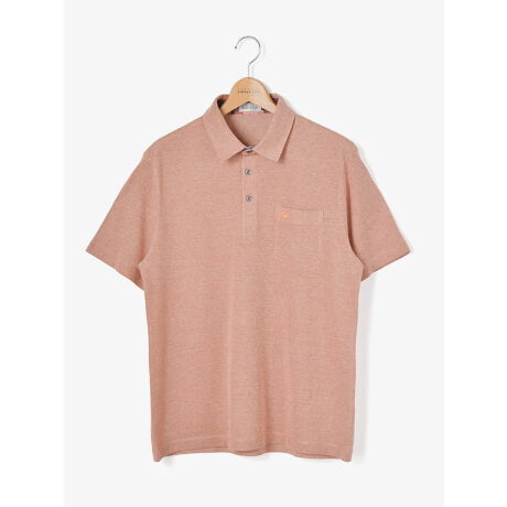 3色の糸を使用することで深みのあるミックスカラーに仕上がった鹿の子を使用している半袖ポロシャツ。
