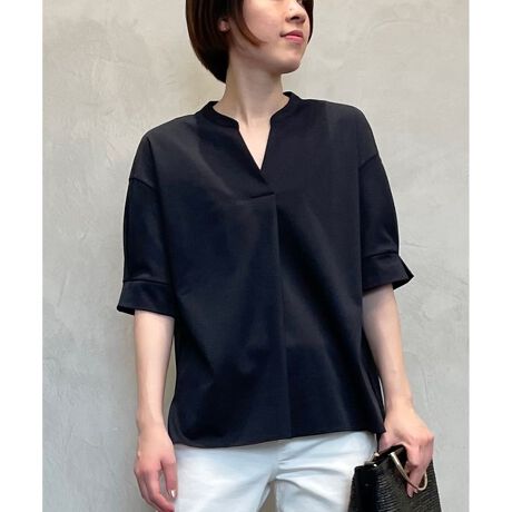 自由区の【洗える/UVケア】トリコットジャージー 5分袖 カットソー。