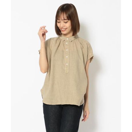 D.M.G/ディーエムジー S/Sレギュラーカラーシャツプルオーバータイプの半袖シャツ。麻100%で夏でもサラっと着れます。小さめの衿が女性らしいデザインです!【D.M.G/ディーエムジー】D.M.G.(ディーエムジー)は岡山県児島のレディースブランドです。厳しい品質管理のもと国産デニムを使い、児島や香川県さぬき市の国内工場で縫製しています。児島の洗い工場で加工を施した製品は、肌馴染みの良い生地感に仕上がり、はき込むほどに独特の風合いを生み、長く味わっていただける商品となります。『デニム』・『ワーク』・『ミリタリー』といったメンズカジュアル服の普遍的なキーワードをイメージソースに、いつの時代にもより沿うベーシックとシンプルを保ちながら、どこか女性らしさを感じさせる服作りを心がけています。