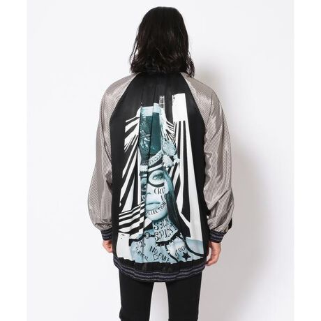 ROYAL FLASH 別注商品SHARESPIRITの名作スカジャンをROYALFLASH別注にてドロップ。生地や細部付属に至る迄、完全フルオーダーしたスペシャルアイテムになります。背中にたっぷりと生地を使ったドレープが、ユニセックスにフィットします。今回のバックプリントのコラージュのポイントはミリタリーのハット、1912年のフランス、ナポレオン1世の時代のハットにボンテージアイマスク、タトゥーメッセージを、デザイナー自ら全て手書きで描かれています。バック背景はシルクドゥソレイユのテント、サーカスパフォーマンスガールをイメージしたデザインになっています。SHARE SPIRIT/シェアースピリット シェアースピリット(SHARE SPIRIT)は片野光が立ち上げた日本のファッションブランド 。メンズ及びレディースウェアを展開。細部まで細かく作りこまれたコレクションは、日本国内はもちろん、海外でも強い人気を誇る。 デザイナーの方の光るが旅を通して感じたもの、見たもの、聞いたもの、文化、民族などからインスパイアされ、シェアースピリットのコレクションに反映させている。アンティーク、ヴィンテージ調のコレクションが特徴。