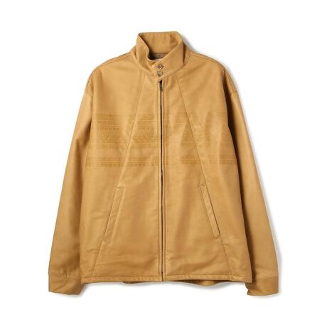 NICENESS/ナイスネス/Leather Blouson -Exclusive-/エクスクルーシブレザーブルゾン 吾亦紅xNICENESS50'sのスポーツジャケットをベースに仕様やシルエットは現代的にモディファイしたジップアップブルゾン。確か2年前ぐらいのssにあった型がベース。今シーズンのテーマの「TRIBE CIRCLE」90'sスケーターカルチャーをmixさせ、その当時流行ったトライバル柄をオリジナルで製作した水染めレザーに施した別注モデル。革含め、職人が裁断から縫製まで一貫して丸上げしているので完璧な完成度90'sアメカジSTYLEはもちろん、個人的には細身で綺麗な真っ黒のスラックスにvansオールドスクール的なスケーター感を出して欲しいです。NICENESS/ナイスネスイイものはイイ=Just good is goodをコンセプトに洋服をデザイン。サヴィー(salvy;)でブランド立ち上げから2017-18年秋冬コレクションまでデザインを担当していた郷裕一が、パーソナルな趣向を反映させた洋服を展開するブランドとして「ナイスネス」をスタートさせる。また、国内外でものづくりの経験を積んできた郷裕一ならではの素材選びがポイントで、玄人好みのブランドと称させれるほど、こだわりの素材が使用した装いを提案する。