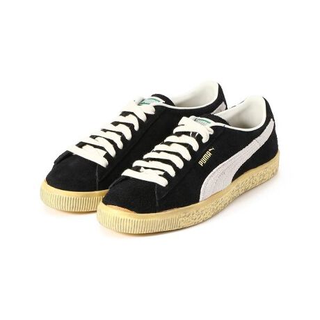 PUMAPuma(プーマ)からデッドストックスニーカーをイメージしたコレクションがリリース!新品のまま経年劣化したような加工を施されたSuedeタイプです。ソールには経年劣化によって生じたような着色が施され、モデルのヴィンテージ感をより際立たせている。また、ブラックをベースにしたアッパーに差し色のグリーンやゴールドの金具が高級感を演出し、プーマのモデルが持つクラシックな雰囲気をより強調させたような仕上がりとなっております。PUMA(プーマ)は、ルドルフ・ダスラーが創業したドイツ ヘルツォーゲンアウラッハを本拠地とする、世界的なスポーツブランド。1924年、アドルフとルドルフのダスラー兄弟が体育館用のシューズを開発したことがブランドの始まり。1948年兄弟喧嘩を機にアドルフ、ルドルフの兄弟は独立を決意。アドルフはアディダス、ルドルフはルーダを設立。ルーダは1949年、プーマへとブランド名を変え現在に至る。プーマの由来はアメリカライオンのピューマから。(ブランドのロゴはチーター)様々なブランド・メゾンとのコラボレーションも有名で、高級ファッションブランドとコラボレートした元祖とも言うべき存在。数あるシューズブランドの中でも、芸術性の高い数々の名作を世に送り出すスニーカーブランドとして確固たる地位を築いています。