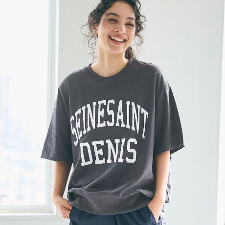 胸元に大きくレイアウトされたヴィンテージ感のあるロゴプリントがポイントに。