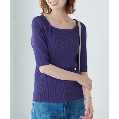・パイピング使いがアクセントのスクエアネックニット。