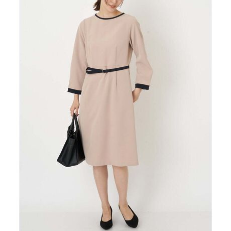 大事な会で着るために購入。顔色がよく見えるようにベージュ系統の明るめの色を探していました。ベージュの色味は明るすぎずきちんと清潔感があります。首、手首、ベルトがバイカラーでポイントになっていて可愛いく、締まって見えます。