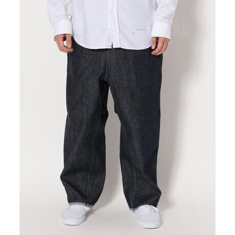 TUKI type3 indigo denim。ぼわんとふくらむボリュームのあるシルエットが特徴のパンツです。 高速織機で織られた14オンスのヘビーオンスデニムを使用。インディゴ染めの前にベージュの染料で下染めされているため、色落ちは自然とユーズド感が出てきます。 素材の特性である生地表面の毛羽立ちやねじれも、経年変化として楽しめます。フロントはマリンパンツの仕様と似ており、さらにベルトループが付いています。バックスタイルは立体的なドレープが独特な雰囲気です。ヒップ・腿まわりがゆったりとし、裾に向かってテーパードの効いたスタイル。やや長めのクロップドパンツ、ロールアップするとバランスよく穿いていただけますよ。TUKI /ツキオーセンティックとエキセントリック、両側面のデザインで作られるボトムスオンリーのブランド。独自のテキスタイルを使い、男女の区分無く、シルエットとバランスによって、カテゴライズされない不思議なニュアンスを持つボトムス。TUKIのボトムスをコーディネートに取り入れることで、ベーシックなトップスやシャツなども今までとは違った着こなしが楽しめます。
