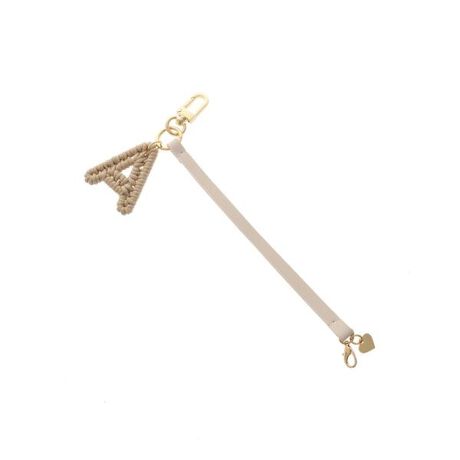 ◇Samantha Thavasa Petit Choice(サマンサタバサプチチョイス)のラタンイニシャルチャーム A蝋引き紐、ワックスコード、ロウビキなどと呼ばれるポリエステル素材にロウ引き加工を施した紐を使った、インパクトのあるイニシャルチャーム。ナチュラルな見え方をするようにパーツを作ったので天然素材や雑材などとも好相性◎キーチャームと共に合皮のパーツもつけたので、キーチャームとしてだけでなくバッグチャームとしてもお使いいただけます。※型に手巻きで紐を巻いている為巻き方や、紐端の位置など個体差があります