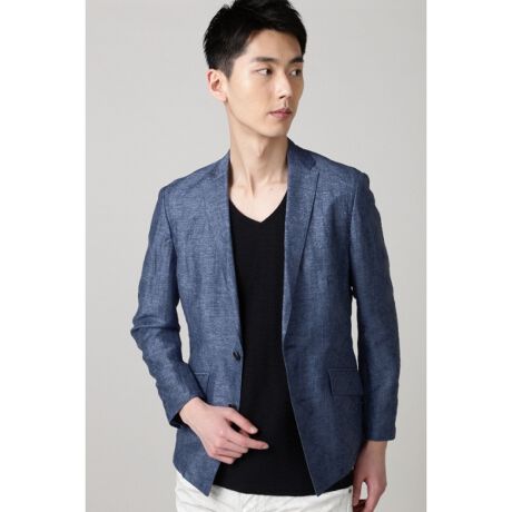 イタリアプラトー地区に位置するPANDA社の麻ジオメトリックジャカードで仕立て上げたテーラードジャケット。ナローラペルにスラントポケット、センターベントや本切羽の本格仕様で、大人の装いに最適なアイテムです。