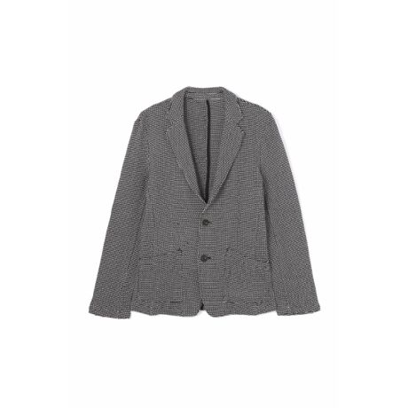 高めのゴージラインに、シャープなシルエット、鋭角なパッチポケットでエッジを効かせています。