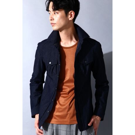 ナイロンベースのシャンブレーデニム調素材を使用し、きれい目なシャツブルゾンに仕上げました。