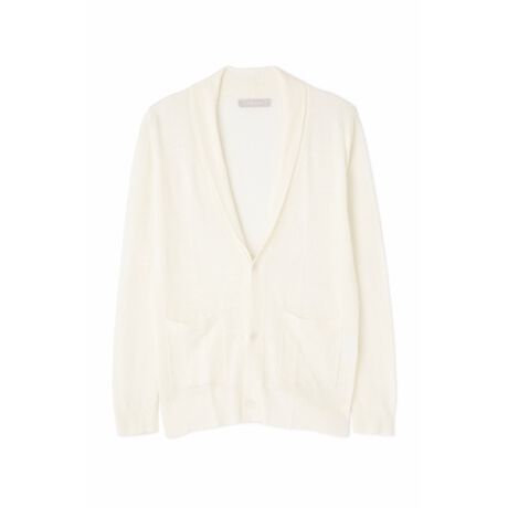 テンセル混のリネン糸を使用したハイゲージのショールカラーカーディガンです。
