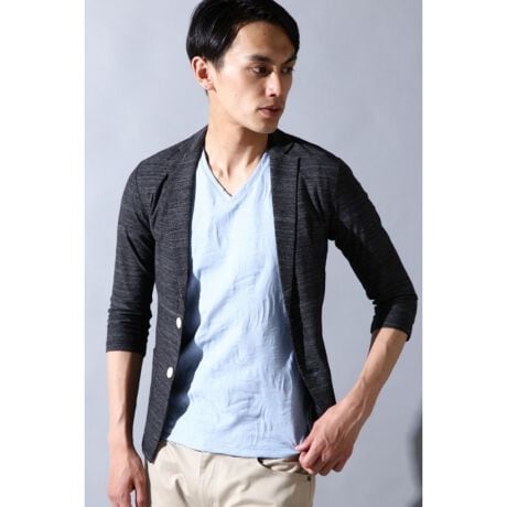 新素材を使った7分袖テーラーカーデ。