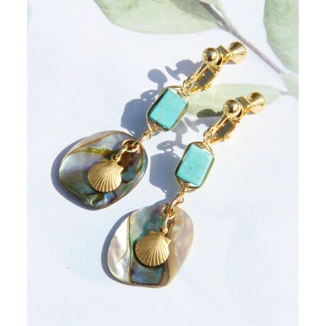 ワイスチャームの【涼しげなシェル素材】シェル×ターコイズイヤリング。