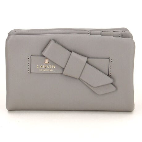 片結びのようなデザインのリボンが大人っぽい可愛さと上品さを演出しているお財布シリーズです。発色・手触りともに極上のイタリア製スムース革を使用しています。リボン部分にはロゴが金箔押しされていて、さらにそこにゴールドのブローチがつくなど細部にもこだわって作られました。