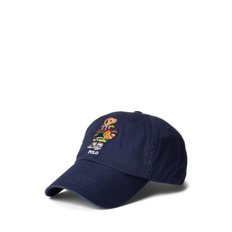 バスケットボールの試合を楽しもうとするPoloのアイコニックなマスコットをフロントにあしらった、コットンチノのボールキャップ。・シーム入りのつば・6枚パネル構造・通気性を高めるアイレット刺繍 / 内側にスウェットバンド・フロントにPoloベアと”Polo”の刺繍・背面に”Polo Ralph Lauren”の刺繍とバックル付きレザーストラップ