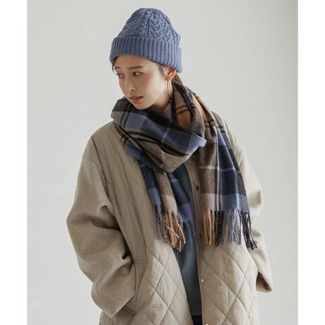 落ち着いた配色で作られた、大人なチェック柄ストール。