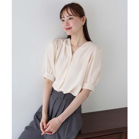 半袖パールボタンブラウス