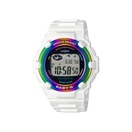 爽やかなホワイトをベースカラーに、ベゼル部にはレインボーI Pを施し、カラフルな虹を表現。