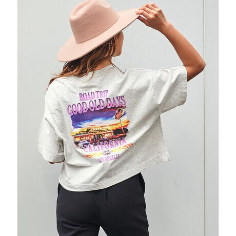 雰囲気たっぷりの、古着みたいなプリントデザインがかわいいクロップドTシャツ。