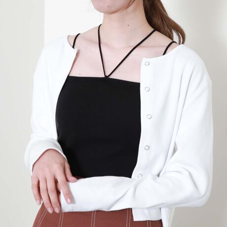 リブショートカーディガン/
