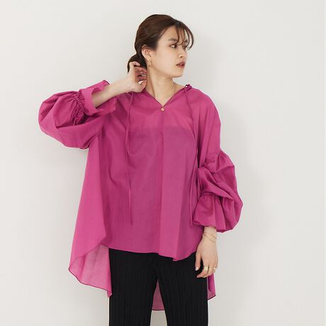 袖のボリュームとゆったりとしたフォルムで、リラクシーに着られるスキッパーブラウスです。