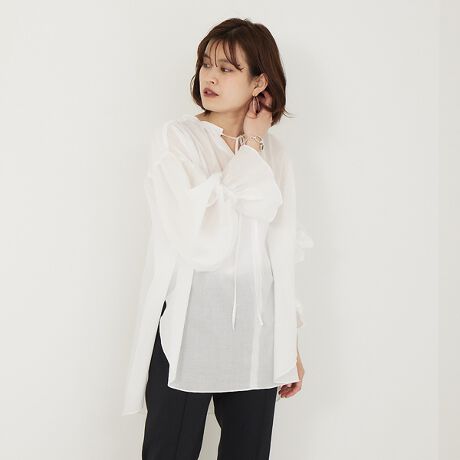 袖のボリュームとゆったりとしたフォルムで、リラクシーに着られるスキッパーブラウスです。