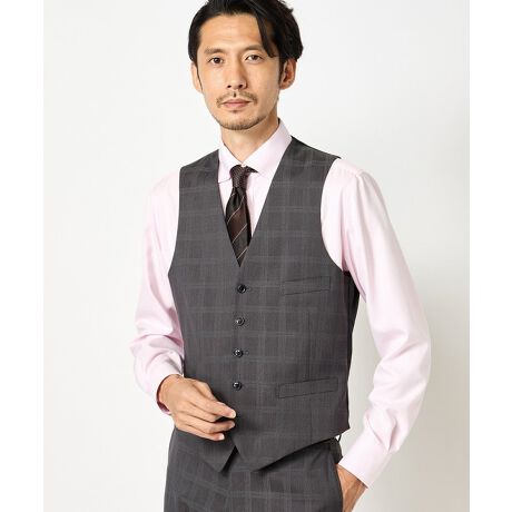ベスト単体での着用はもちろん、上記のスーツセットと合わせてスリーピースとしても着こなしが可能。