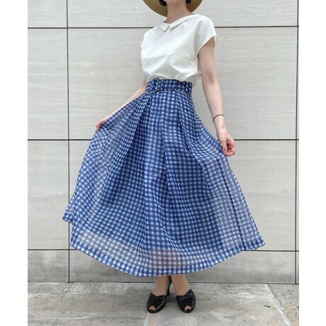 エアリーなシアー素材のギンガムチェックが目を惹くタックスカート。