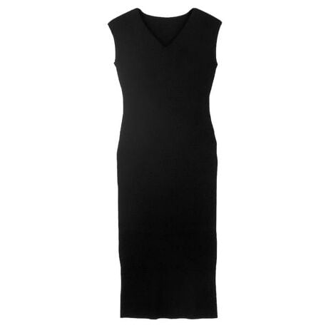 体にフィットする柔らかい素材が着心地よく、上品なシルエットが女性らしさを引き立ててくれる一枚です。