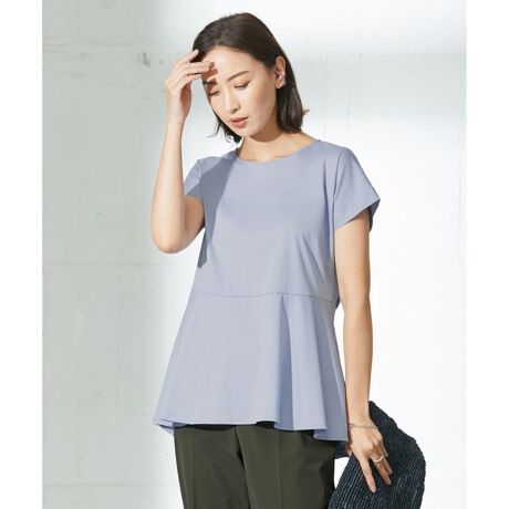 ■デザインフレンチスリーブのぺプラムカットソーです。フィット&フレアのシルエットを前は切り替えパターン、後ろはタックで構築的にデザイン。すっきりとしたシルエットのパンツと合わせるのがおすすめです。