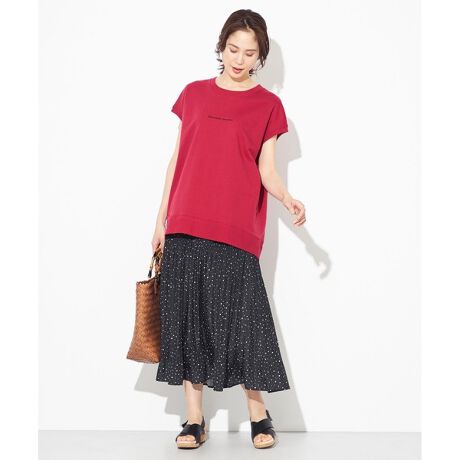 ロゴトップス×ドットスカートのセットアイテムPOINT●迷わずコーディネートが完成するセットアイテム●別々でも使える■デザインゆったりとしたシルエットとカラーが特徴のトップスと、フレンチシックなランダムドットプリーツスカートの2点セットです。【トップス】トレンド感のある鮮やかなカラーが魅力のトップスです。ゆったりとしたシルエットで、肩を覆うフレンチスリーブや、ヒップラインにかかる着丈、インナーが見えにくい袖口の開きなど細部にこだわったデザインです。フロントにはミニロゴ刺繍をあしらい、フランス語で「私のための色」という意味です。【スカート】スカートはプリーツ巾の異なるダブルプリーツをかけています。ウエスト周りには細かいプリーツが入っているので気になるウエスト周りもすっきりと見え、裾にかけて軽やかに広がります。ウエストはゴム仕様なので、ストレスフリーな着心地です。■素材【トップス】透けにくく、下着のラインを拾いにくい綿100%のしっかりとしたミニ裏毛を使用しております。【スカート】マットな見え感と軽さが特徴のポリエステル素材を使用しております。裏地付きです。※モデル画像はサンプルを使用している為、実際にお届けする商品と仕様、加工、サイズが若干異なる場合がございます。予めご了承ください。※モデル画像は撮影環境の都合上、実際の商品と色味が異なって見える場合がございます。色味は商品画像をご参照ください。
